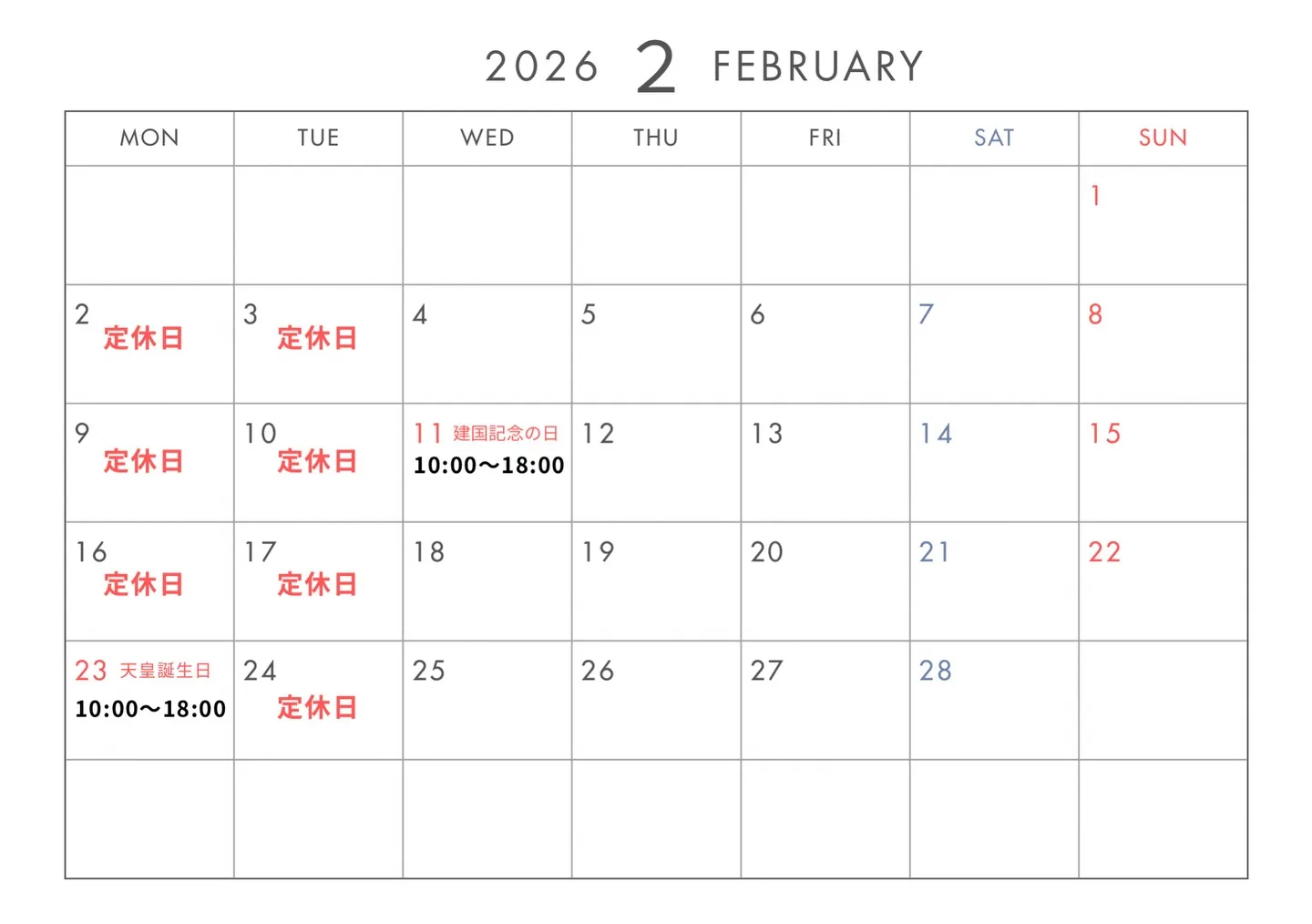 土日祝 10:00〜最終受付18:00